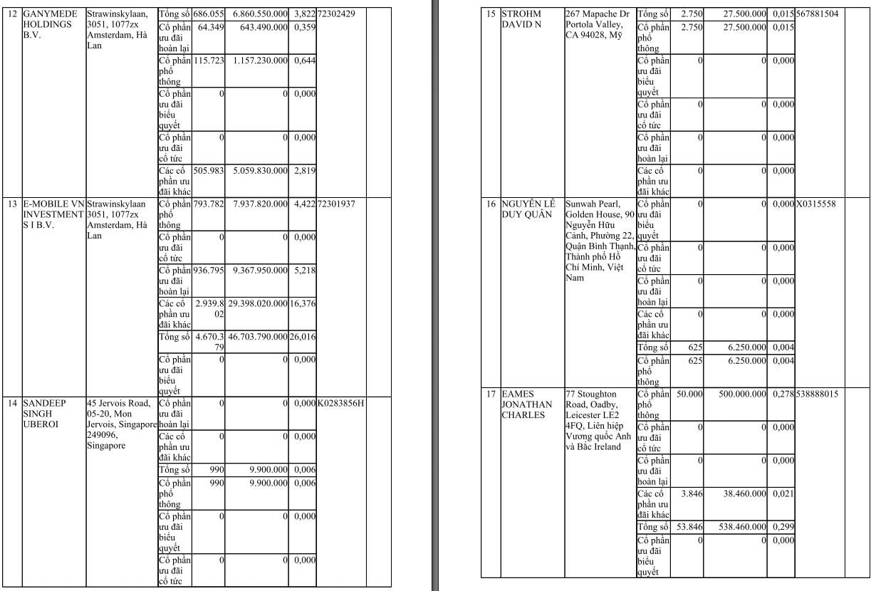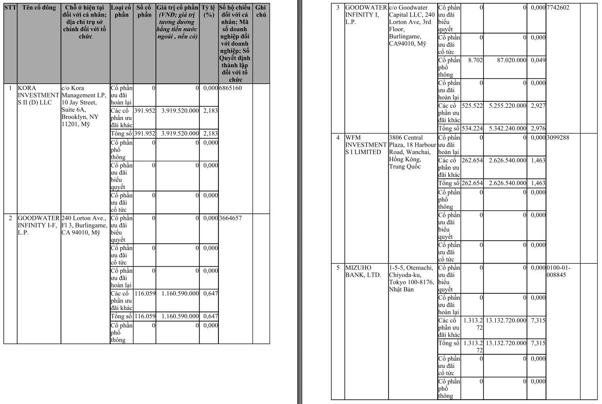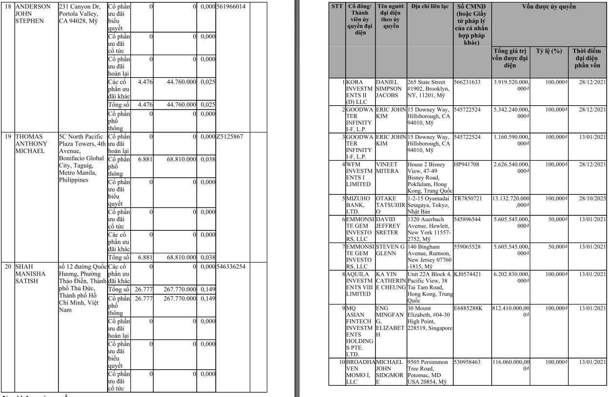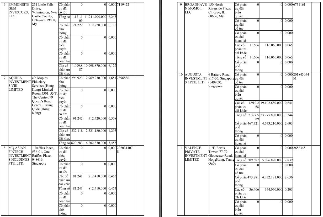 Danh sách 20 cổ đông ngoại sở hữu 71,259 % MoMo