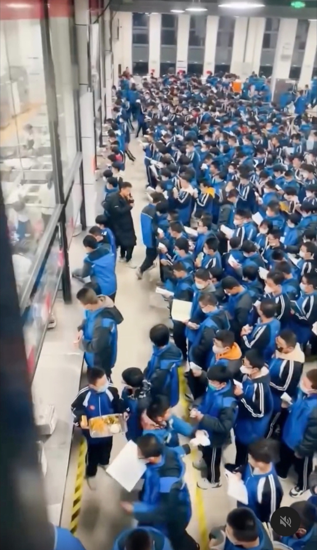 Mới đây, hình ảnh chụp tại một căng tin của trường cấp 2 ở thành phố Sóc Châu, tỉnh Sơn Tây (Trung Quốc) lan truyền trên mạng xã hội. Trong đó nhiều em học sinh vừa cầm khay cơm vừa cúi mặt vào sách vở để học, thay vì tranh thủ ăn uống hay nghỉ ngơi.