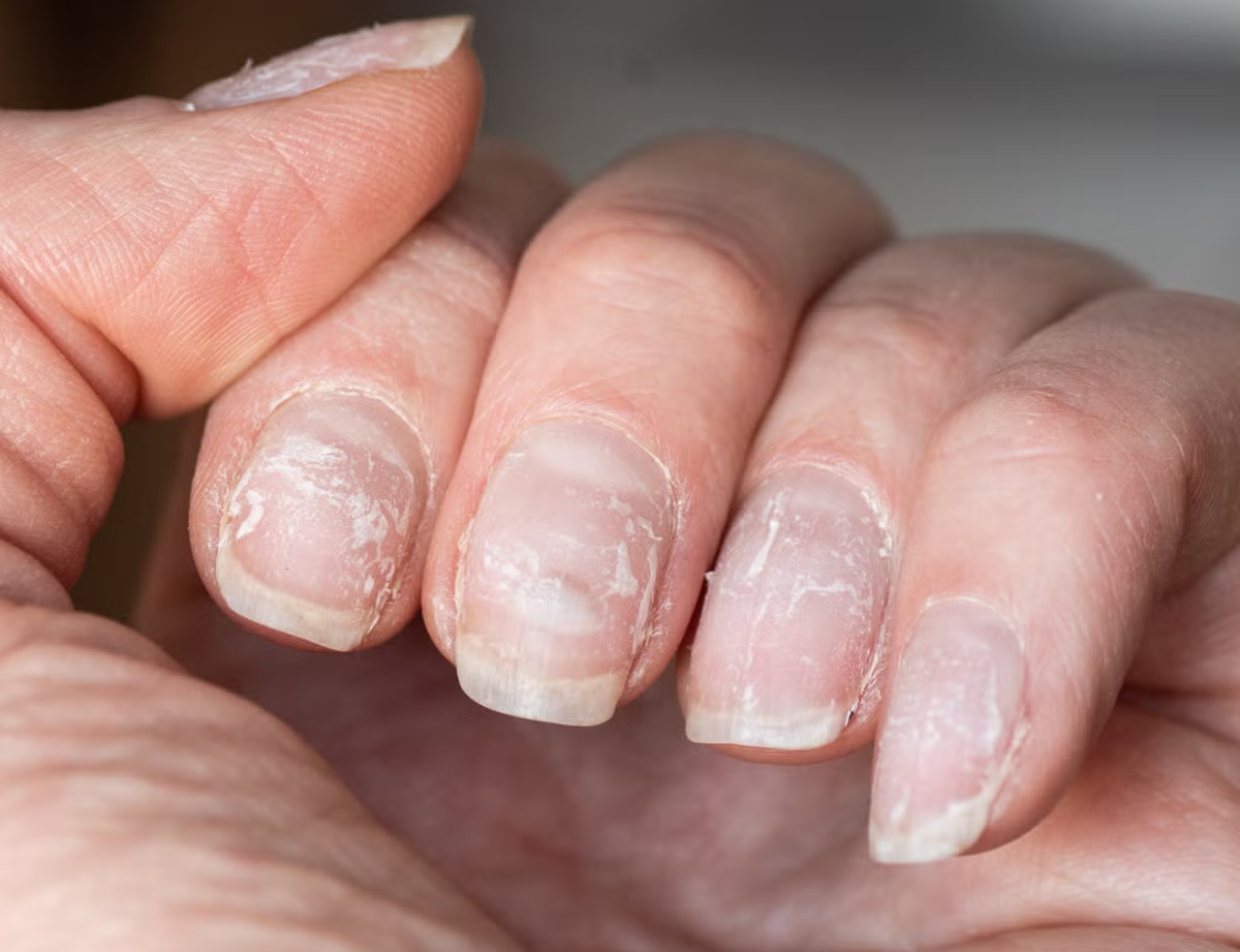 5. Móng tay giòn, dễ gãy và tách khỏi nền móng
