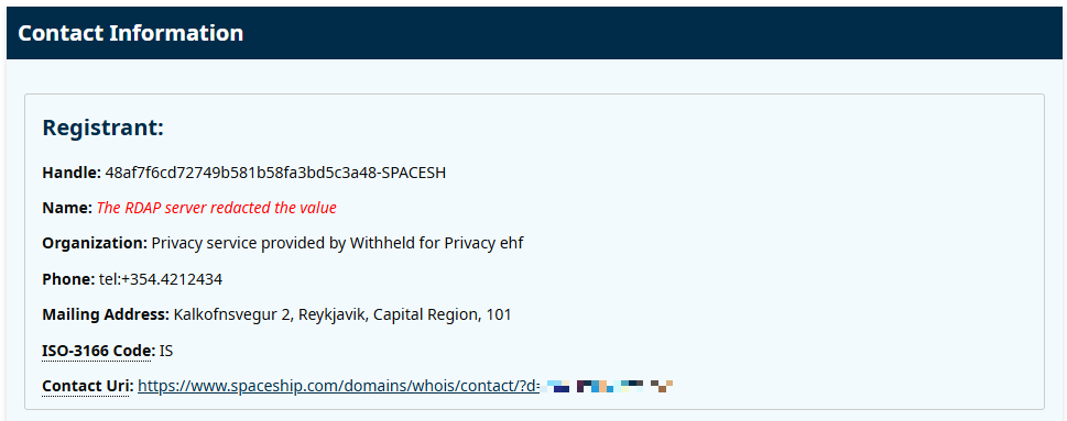 Lý do là vì địa chỉ này cũng là nơi đăng ký của "Withheld for Privacy", một công ty nằm trong ngành công nghiệp đang bùng nổ và phần lớn không được quản lý, cho phép những người điều hành tên miền trực tuyến che giấu danh tính. Công ty này được tạo ra vào năm 2021 bởi Namecheap - một trong những nhà cung cấp trang web lớn nhất thế giới - và đã che đậy hiệu quả cho hàng chục nghìn trang web mờ ám, biến Iceland thành một trung tâm toàn cầu cho các hoạt động bất hợp pháp.
