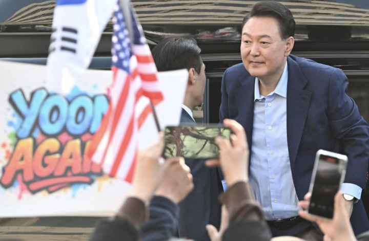 Cựu Tổng thống Hàn Quốc Yoon Suk-yeol rời Dinh Tổng thống ngày 11/4. (Ảnh: SCMP)