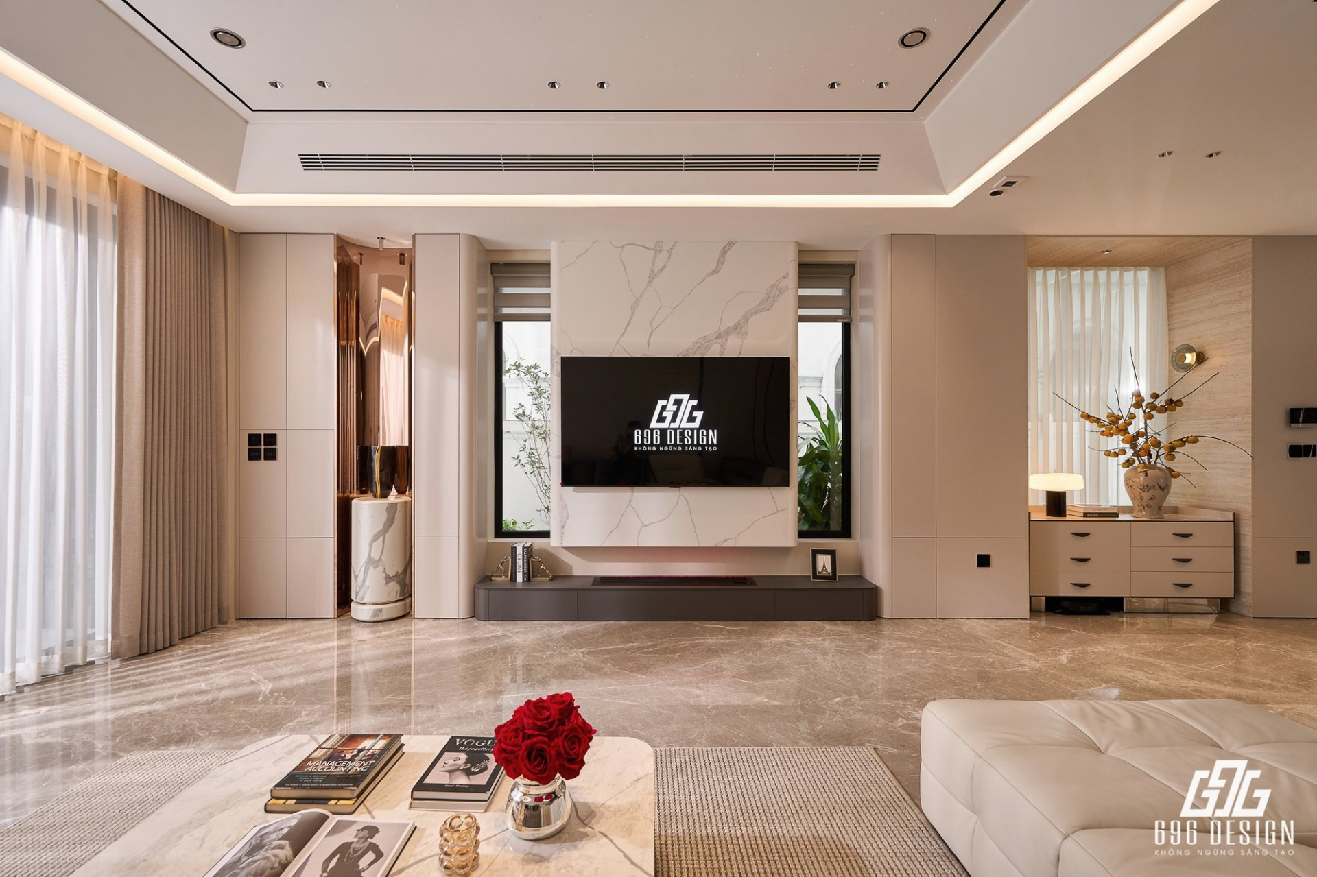 Bên trong, không gian được thiết kế theo hướng mở, các khu vực liên thông tạo cảm giác rộng và thoáng hơn so với chung cư trước đây. Từ phòng khách, bếp đến phòng ngủ đều được đầu tư chỉn chu, đồng bộ về phong cách và nội thất.