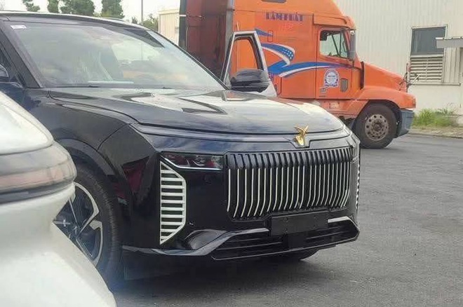 Logo đầu và đuôi xe không giống logo VinFast thông thường, mặc dù kiểu dáng cho thấy đây nhiều khả năng là xe VinFast, phát triển từ VF 9. Ảnh: FB