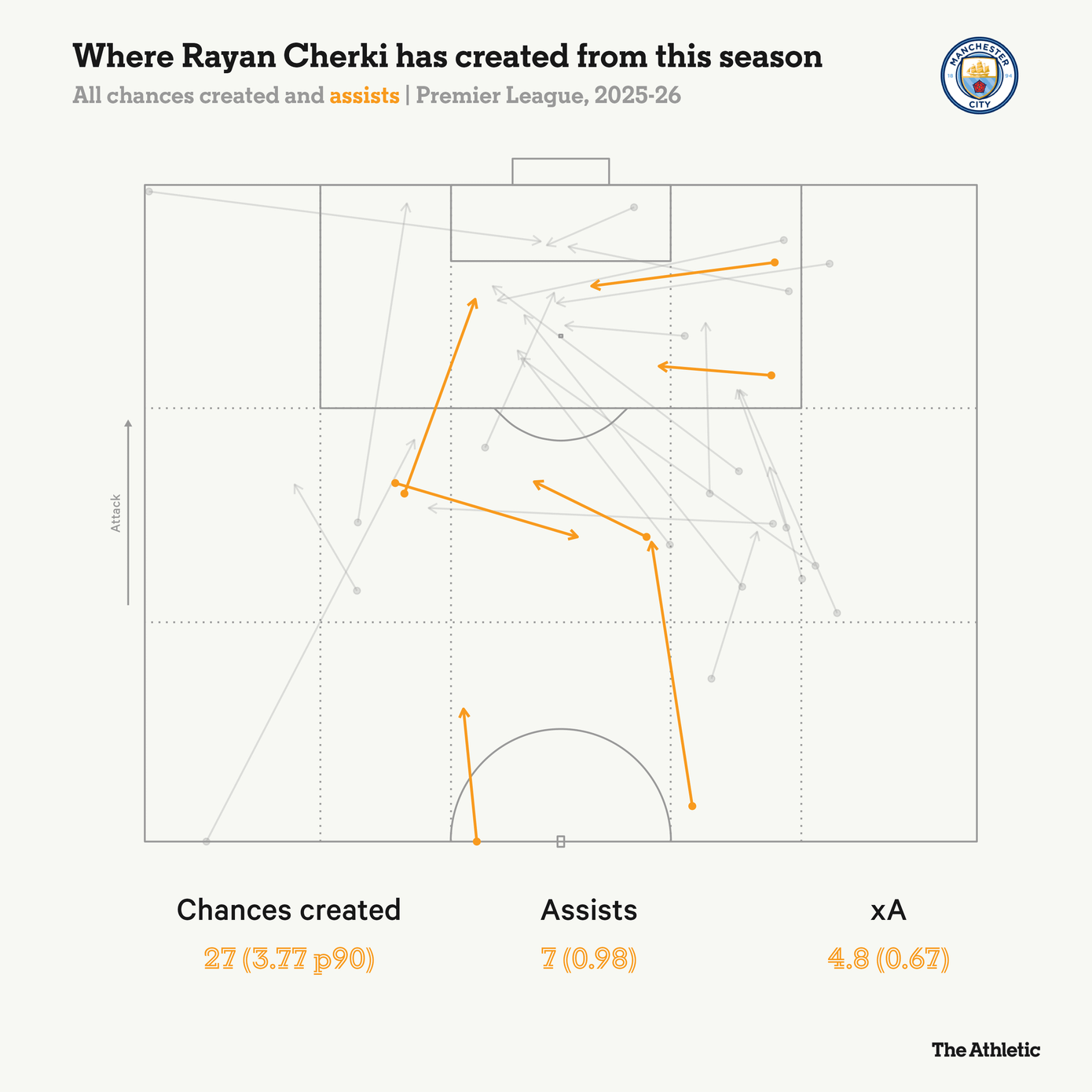 Nếu như những lời tán dương của ông trước giới truyền thông vẫn chưa đủ, thì cách tiếp cận chiến thuật của Guardiola ngày càng cho thấy ngay cả ông đang bị cuốn hút bởi lối chơi bóng đá khéo léo và đầy tự tin của Cherki. Kể từ chiến thắng 3-1 trước Bournemouth hồi đầu tháng 11, khi ông lần đầu tiên cho Cherki thi đấu cùng với Phil Foden, Guardiola hầu như không thay đổi đội hình xuất phát ở Premier League. Ông tập trung vào việc bố trí xung quanh cầu thủ 22 tuổi này những cầu thủ kỹ thuật tốt.