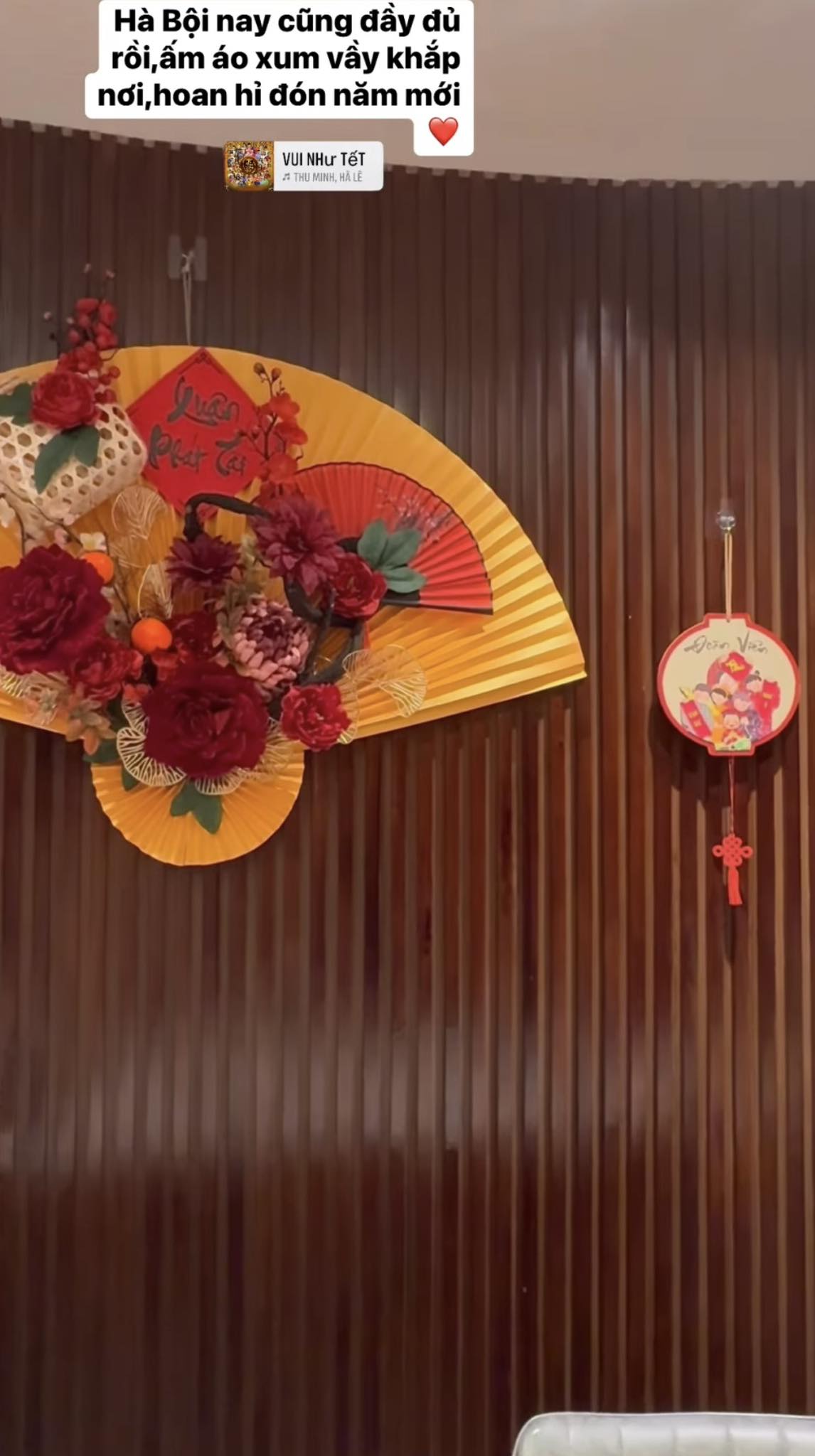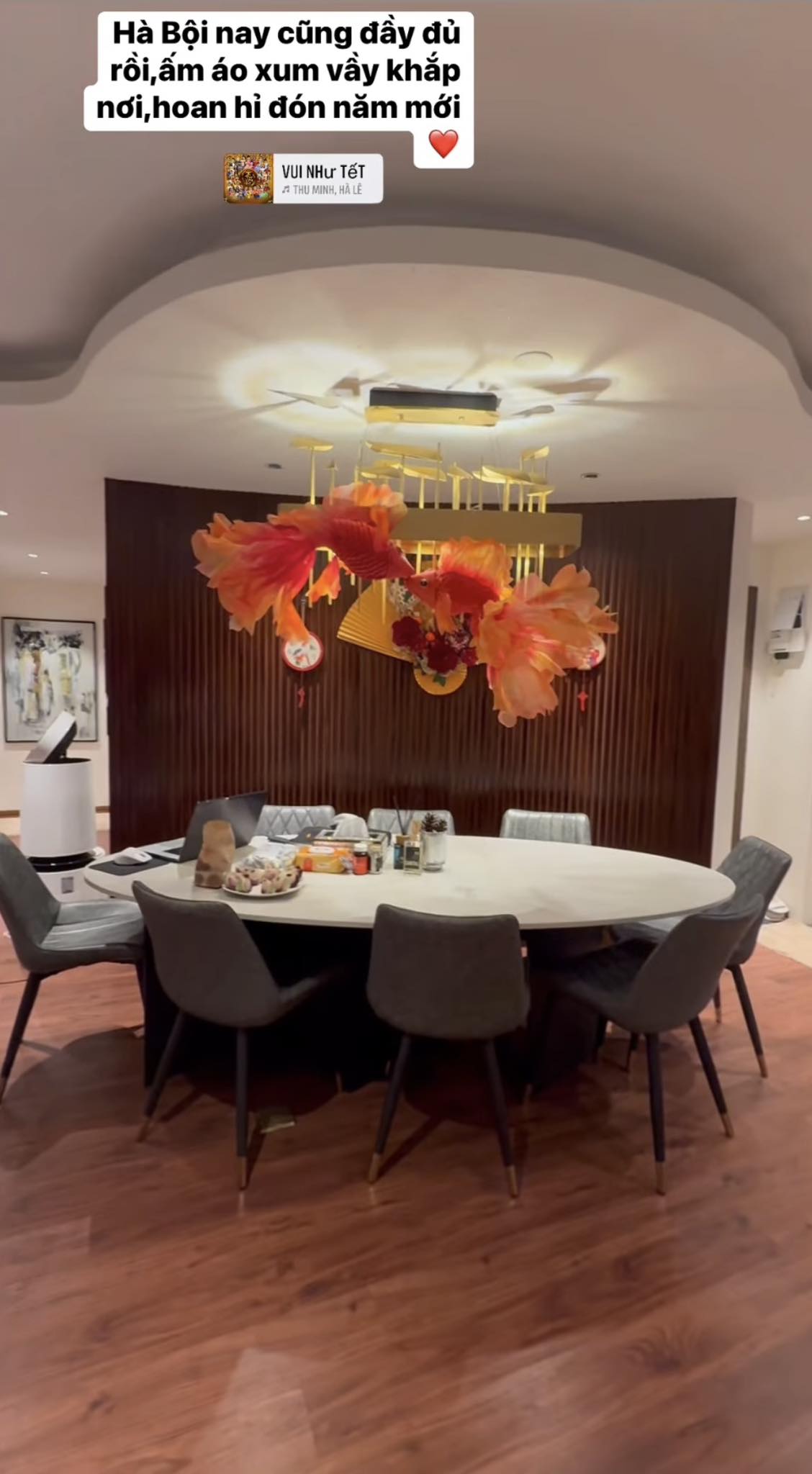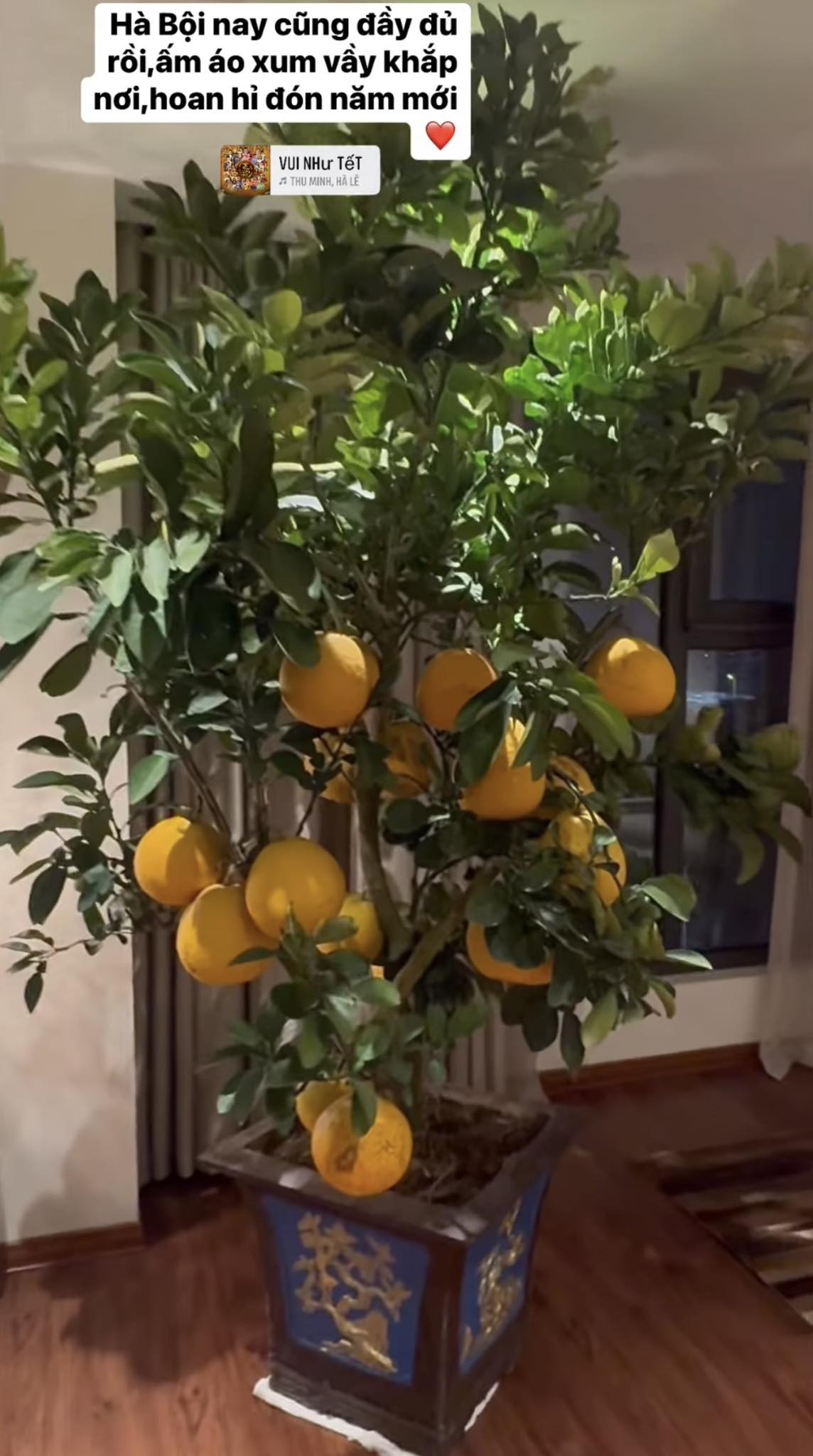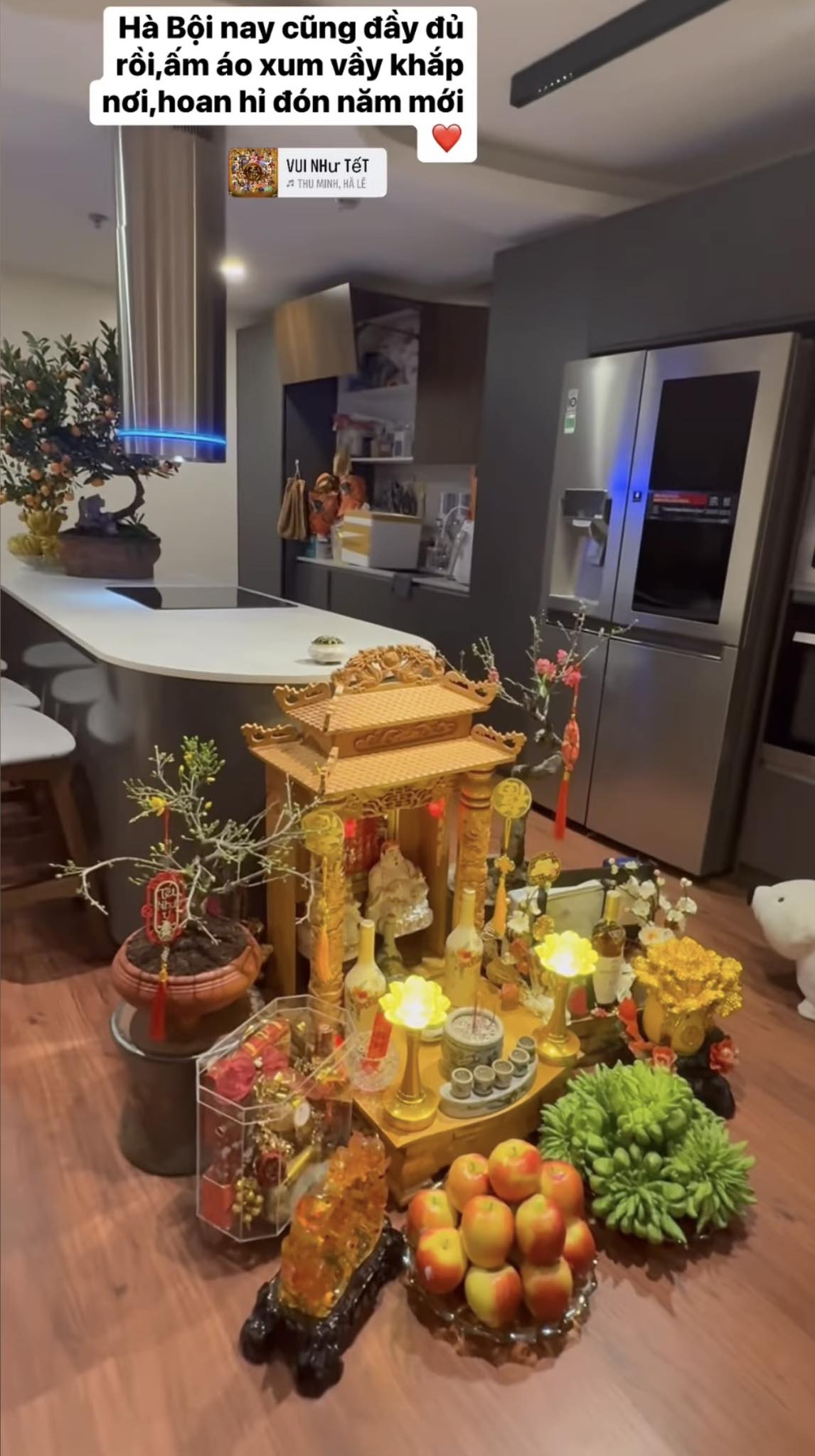 Mới đây, nữ ca sĩ đã đăng tải video khoe không gian bên trong căn chung cư cao cấp ở Hà Nội những ngày sát Tết. Cô còn không quên kèm theo dòng trạng thái bày tỏ cảm xúc hứng khởi của bản thân :‘‘Hà Nội nay cũng đầy đủ rồi, ấm áo xum vầy khắp nơi, hoan hỷ đón năm mới’’.