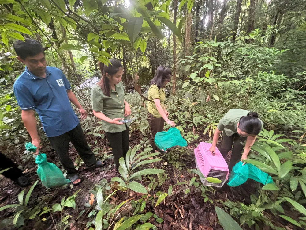 Các cá thể được thả gồm 2 khỉ đuôi dài, 2 rùa núi viền và 1 mèo rừng, với tổng trọng lượng gần 15kg. Đây đều là loài thuộc nhóm động vật rừng nguy cấp, quý hiếm được ưu tiên bảo vệ. Trước đó, các cá thể này được người dân tự nguyện giao nộp cho Hạt Kiểm lâm các huyện Đăk Hà và TP Kon Tum.