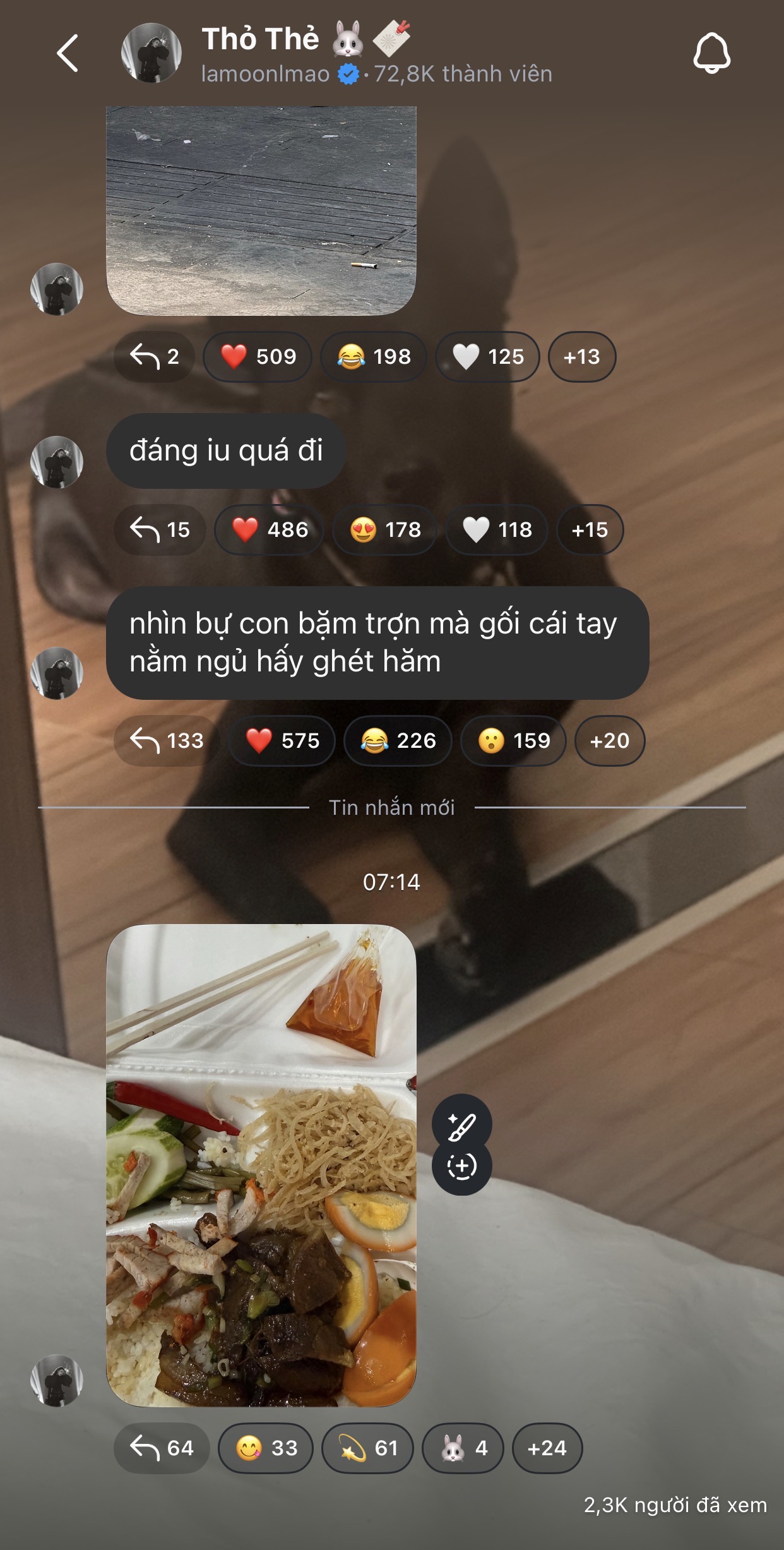 Tuy nhiên, trong kênh broadcast riêng, Lamoon vẫn duy trì thói quen cập nhật những khoảnh khắc đời thường. Cô đăng tải hình ảnh sinh hoạt buổi sáng, trò chuyện nhẹ nhàng với người hâm mộ với nội dung giản dị xoay quanh cuộc sống hàng ngày. Không có bất kỳ dòng trạng thái nào nhắc đến những thông tin đang lan truyền bên ngoài.