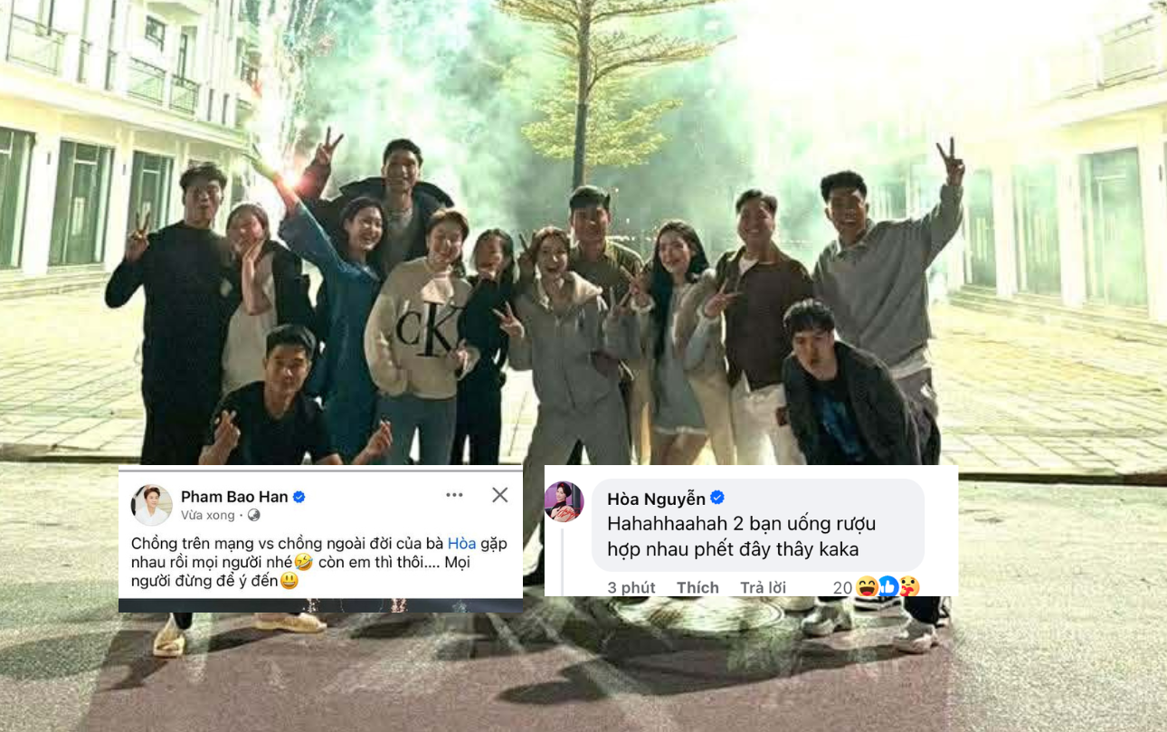 Cụm từ "chồng trên mạng" ám chỉ tiền đạo Văn Toàn – người bạn thân 10 năm thường xuyên được fan "đẩy thuyền" nhiệt tình với Hòa Minzy. Trong khi đó, "chồng ngoài đời" chính là người đàn ông vừa được nữ ca sĩ chính thức xác nhận danh tính sau nhiều đồn đoán. Ngay dưới bài đăng, Hòa Minzy cũng hào hứng để lại bình luận khẳng định hai "ông chồng" này có tửu lượng rất hợp nhau, khiến cộng đồng mạng không khỏi thích thú trước sự thân thiết của nhóm bạn.
