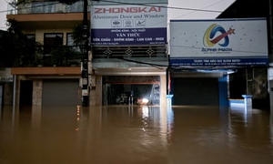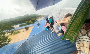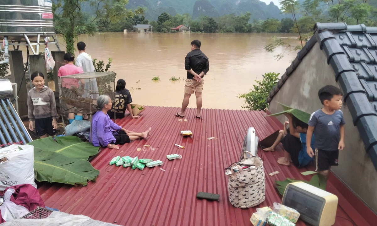 Người dân tỉnh Thái Nguyên cố thủ trên mái nhà khi nước lũ dâng cao, chiều 7/10.