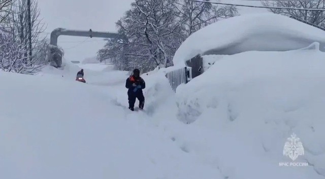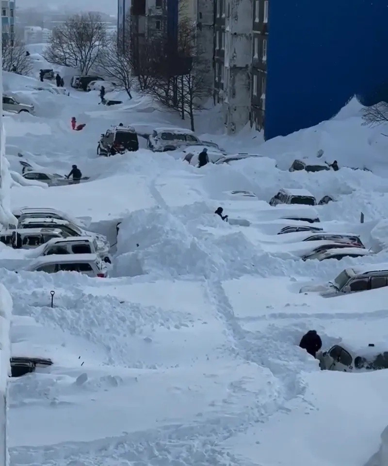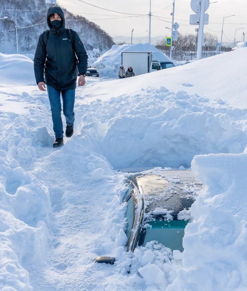 Những đợt gió tuyết dữ dội đã tạo ra các đống tuyết khổng lồ, phủ kín nhiều khu dân cư ở Kamchatka. Các công trình kiến trúc biến mất dưới lớp tuyết trắng, khiến việc di chuyển và sinh hoạt trở nên vô cùng khó khăn.