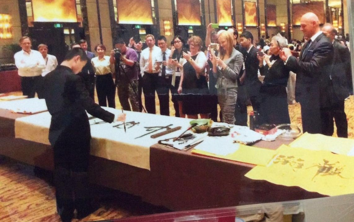 Trong một buổi dạ tiệc từ thiện lớn diễn ra tại Bắc Kinh với sự góp mặt của nhiều doanh nhân, nghệ sĩ và giới tinh hoa Trung Quốc năm 2011, Hạ Thế Long đã bước lên sân khấu thể hiện tài năng thư pháp, cầm bút lông và vung những nét bút mạnh mẽ, dứt khoát.