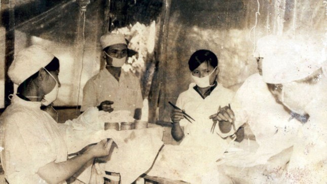 Bác sĩ Nguyễn Kim Nữ Hiếu chăm sóc thương binh tại chiến trường Quảng Trị.