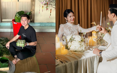 Không khí Tết rộn ràng nhà Quang Hải: Chu Thanh Huyền "xả vai sang chảnh" cùng chồng đun bánh chưng nướng thịt cực chill