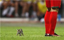 5. Một chú mèo con lon ton chạy vào sân trong trận tranh Siêu Cup Malta giữa Birkirkara và Valletta.