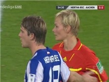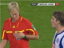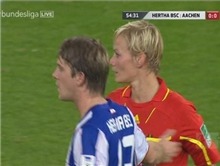 Không biết do vô tình hay cố ý mà cầu thủ Peter Niemeyer của Hertha Berlin đã lướt tay qua ngực nữ trọng tài Bibiana Steinhaus, trọng tài chính trận đấu Hertha BSC và Aachen trong khuôn khổ giải hạng hai Đức cuối tuần qua.