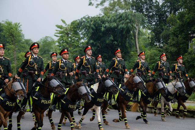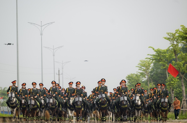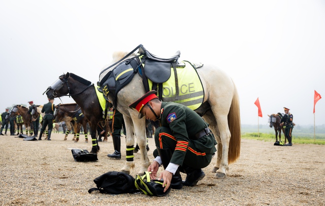 Dưới thời tiết khắc nghiệt, mưa nắng thất thường, những buổi tập luyện của khối cảnh sát cơ động kỵ binh vẫn diễn ra nghiêm túc và đầy quyết tâm.