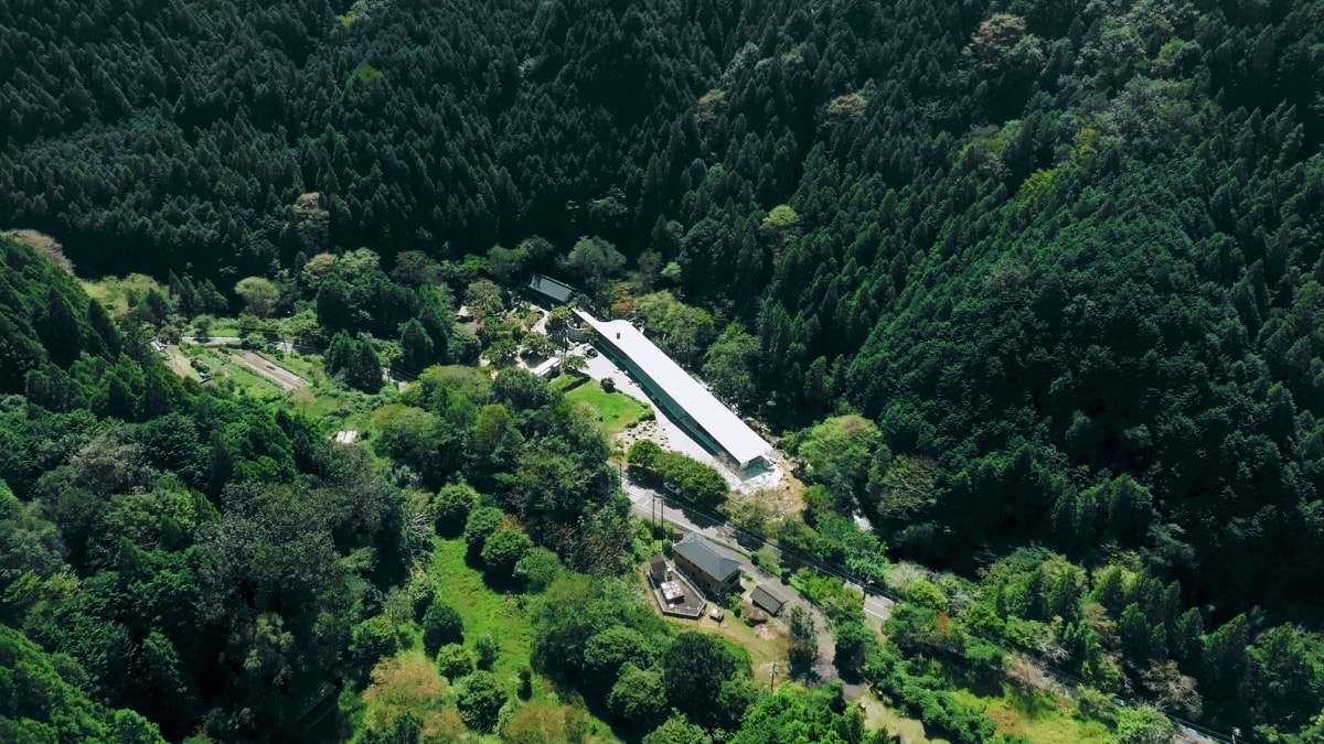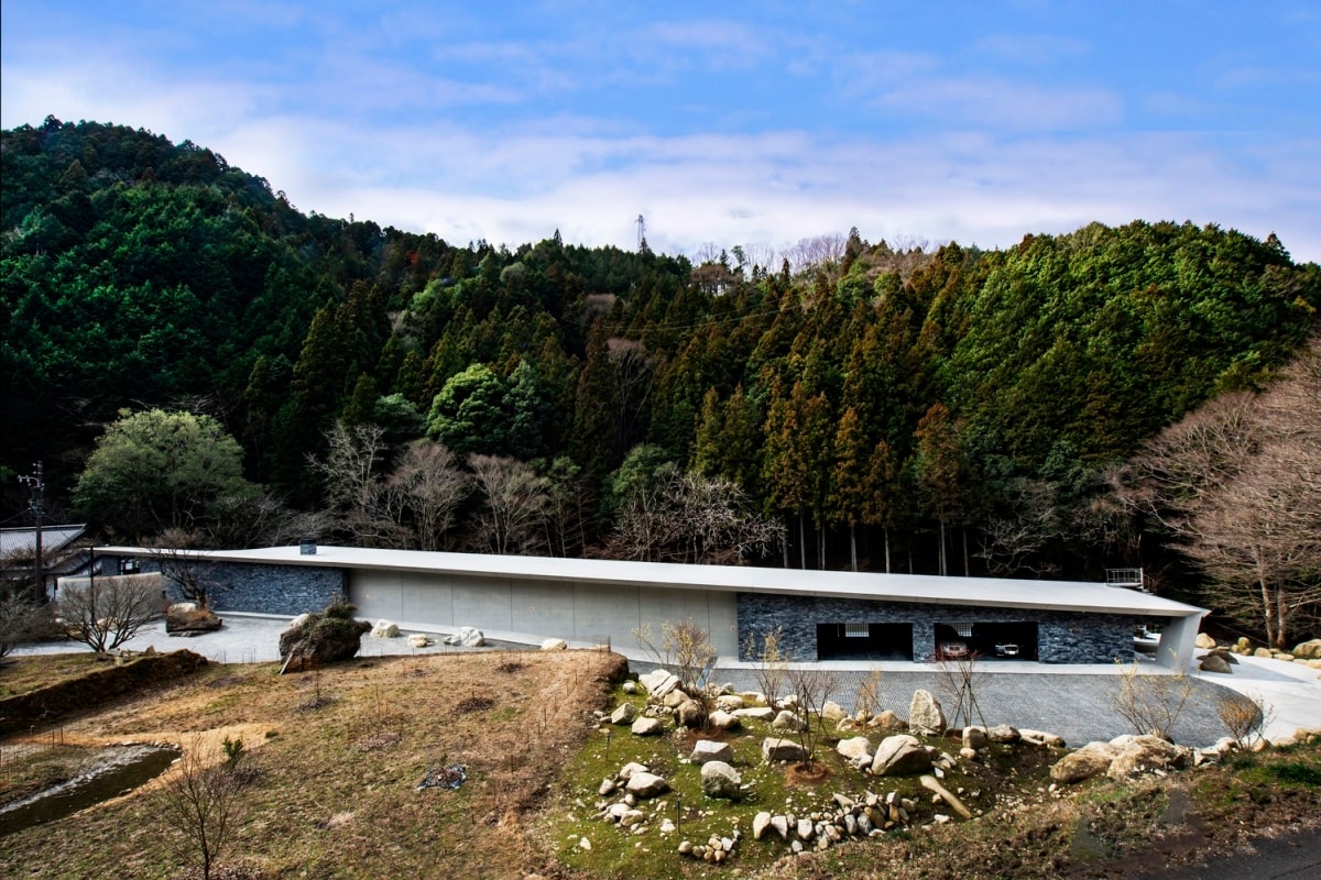 Biệt thự tại thành phố Toyota, Nhật Bản có diện tích xây dựng 435 m2, với chiều dài xấp xỉ 100 m, nằm cạnh một dòng suối và tiếp giáp một căn nhà gỗ truyền thống. Công trình lựa chọn kết cấu bê tông, áp dụng triệt để đặc tính cách nhiệt và lưu giữ nhiệt của vật liệu để duy trì nhiệt độ ổn định quanh năm mà không cần sử dụng điều hòa.