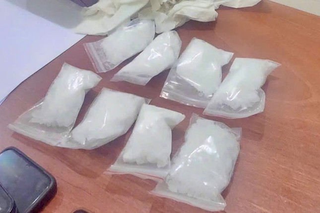 8 gói nilon, bên trong là tinh thể màu trắng, nghi ma túy đá