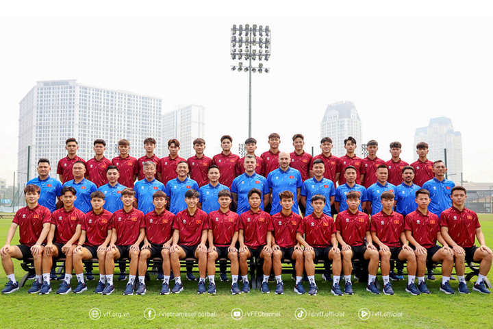 Ban huấn luyện cùng các tuyển thủ U17 Việt Nam. (Ảnh: VFF)