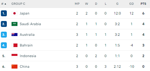 Cả 2 đội Australia và Trung Quốc đều gây thất vọng lớn trong 2 lượt trận đầu tiên vòng loại thứ ba World Cup 2026. Đội tuyển Trung Quốc thua cả 2 trận, trong đó có thất bại 0-7 trước Nhật Bản. Trong khi đội tuyển Australia chỉ giành nổi 1 điểm trước 2 đối thủ Bahrain và Indonesia.