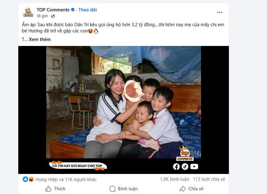 Cụ thể, những ngày gần đây, mẹ của bé vẫn chưa về nhà với 4 chị em. Tuy nhiên, trên mạng xã hội, nhiều người dùng Facebook đã cắt ghép hình ảnh 4 chị em với người dì họ hàng xa là bà Nguyễn Thị Mỹ Lệ, rồi đăng thông tin sai sự thật về câu chuyện gia đình.