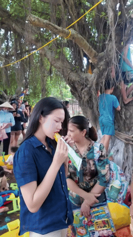 Hải My cùng mẹ chồng mua quà vặt, cùng thưởng thức