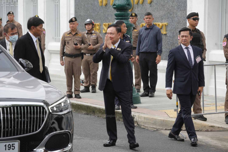 Cựu Thủ tướng Thái Lan Thaksin Shinawatra xuất hiện trước Tòa án Tối cao ở thủ đô Bangkok vào sáng 9/9. Ảnh: Bangkok Post