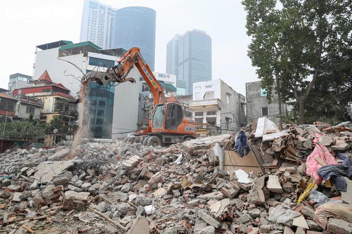 Nhiều công trình đang được tháo dỡ để bàn giao mặt bằng cho dự án đường Vành đai 2,5 đoạn Nguyễn Trãi - Đầm Hồng.