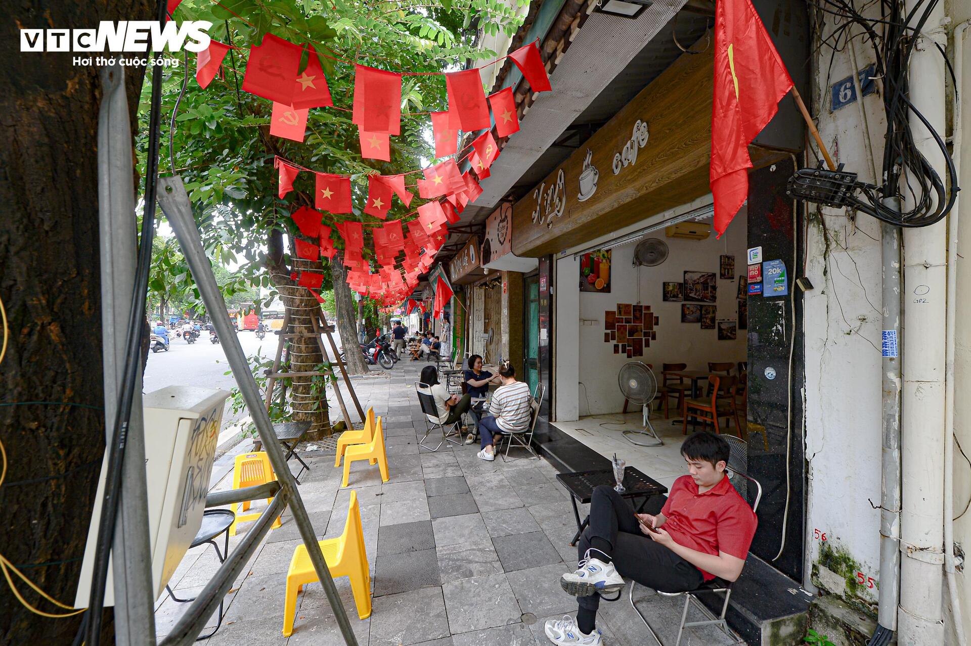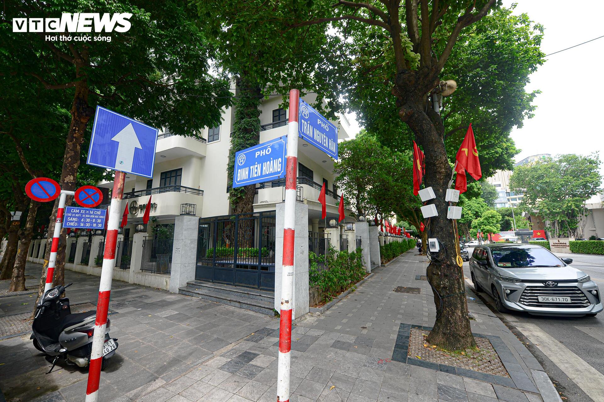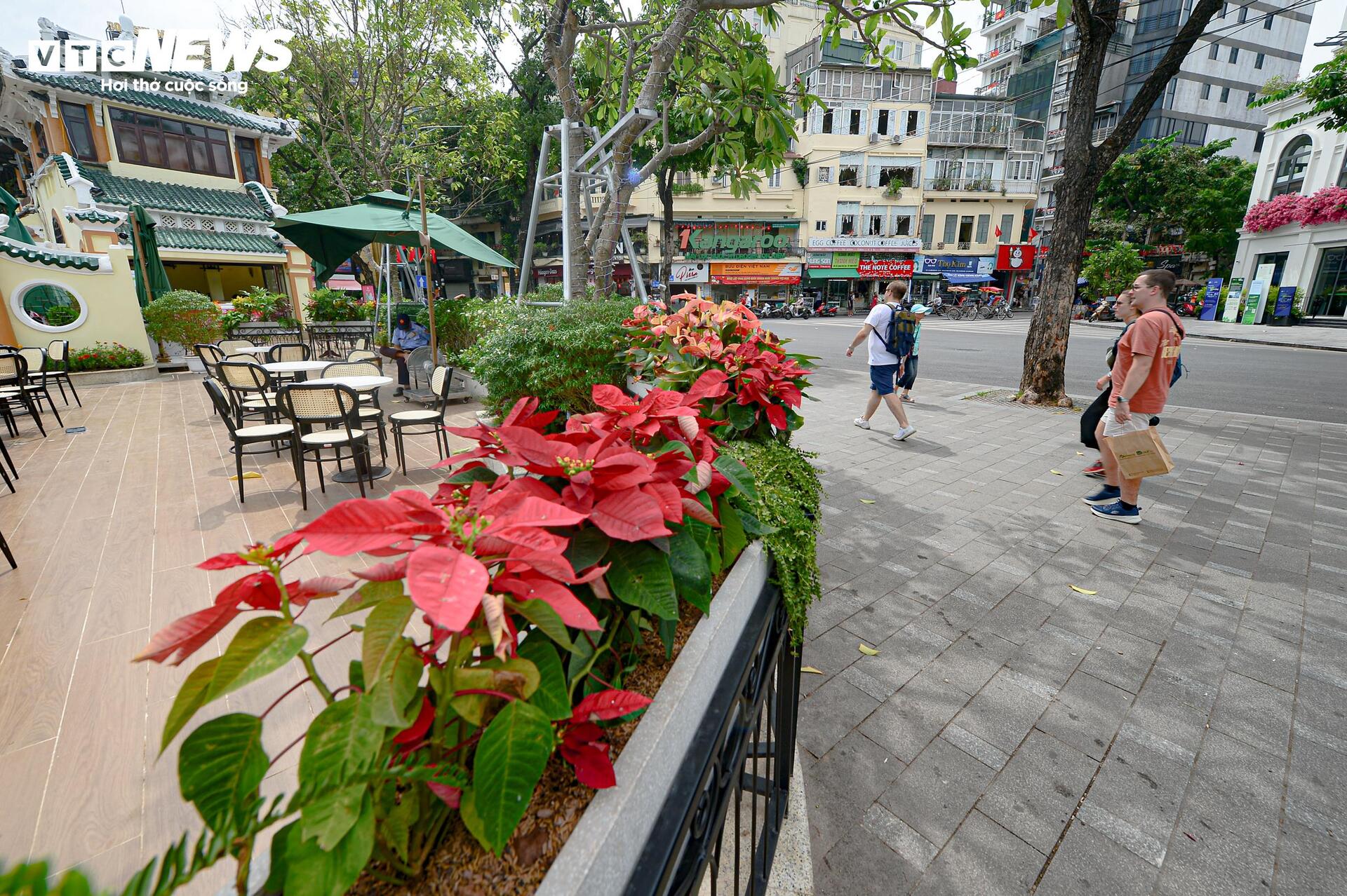 Mặt tiền tuyến phố Đinh Tiên Hoàng cũng được chỉnh trang đáng kể. Dải phân cách được tháo bỏ, bãi đỗ xe di dời, tạo điều kiện thuận lợi cho việc đi bộ, đồng thời bổ sung các chậu cây di động, ghế đá và bồn hoa, mang đến không gian xanh hài hòa, thân thiện với cộng đồng.