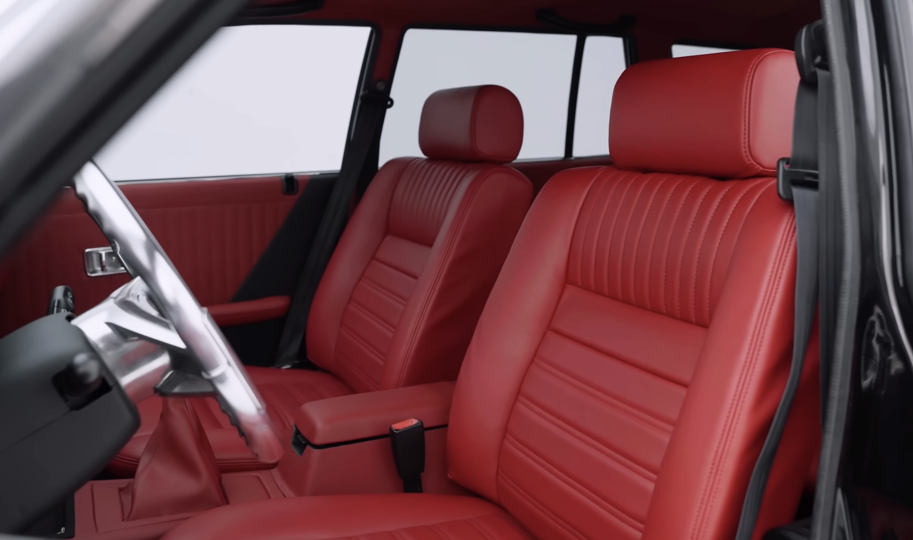 Bước vào khoang nội thất, toàn bộ không gian bên trong được bọc da cao cấp màu đỏ rượu vang, tạo điểm nhấn tương phản rõ nét với ngoại thất đen bóng. Phần tap-lô vẫn được giữ nguyên bản theo đúng cấu trúc thiết kế ban đầu. Trong khi đó, vô lăng được thay thế bằng loại nhôm nguyên khối, mang lại cảm giác chắc chắn và hiện đại hơn.