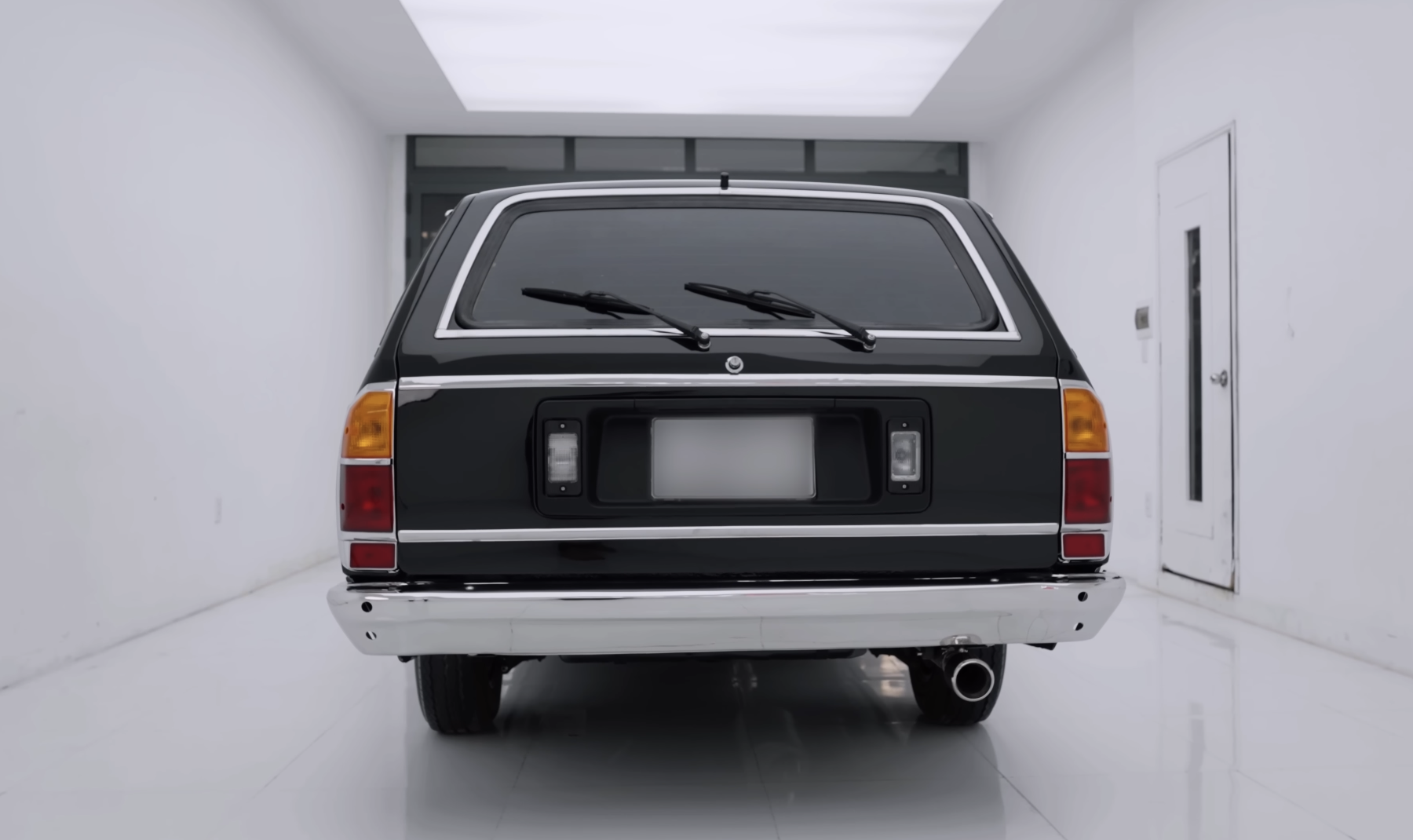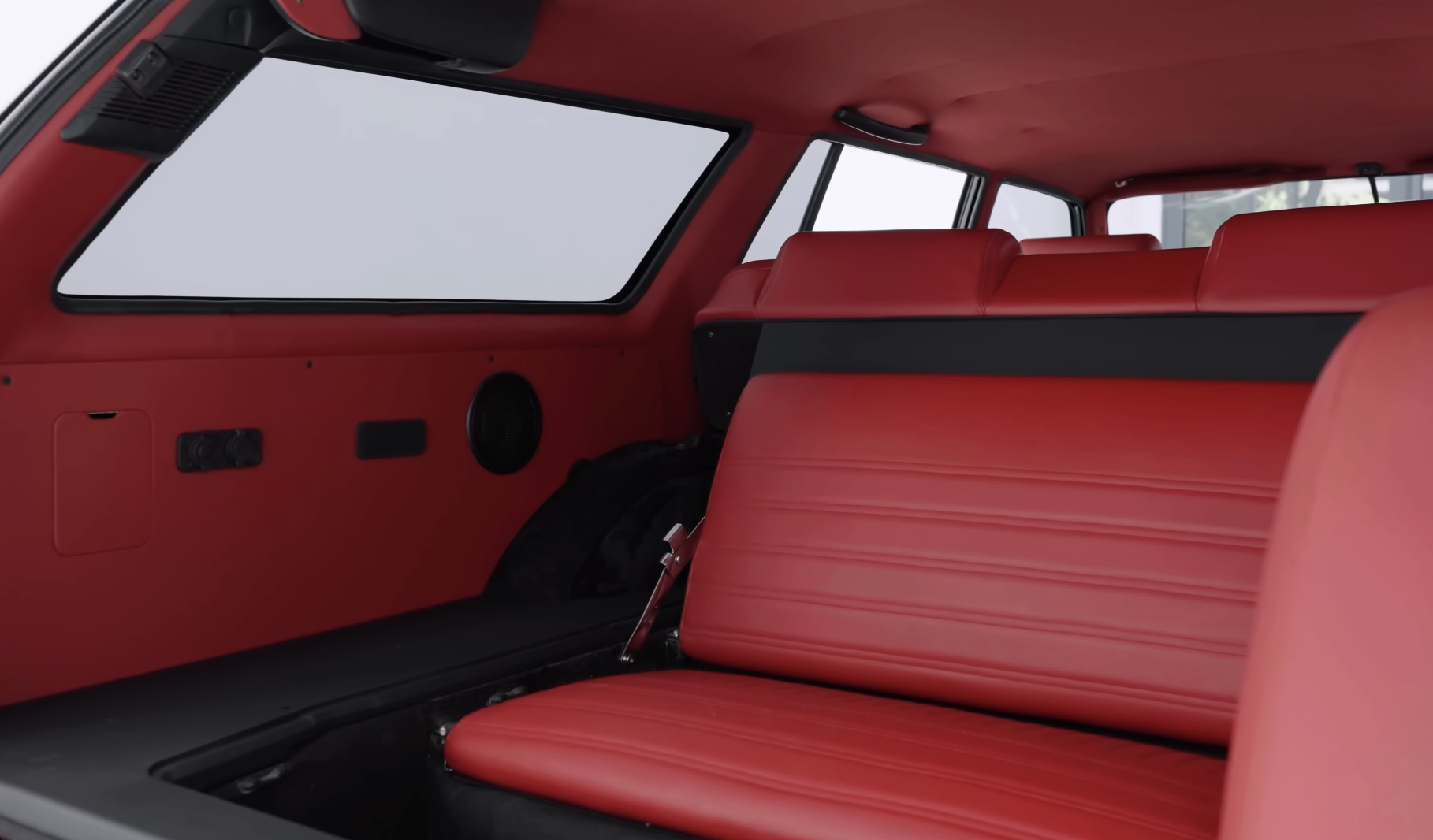 Ở phía sau, hàng ghế thứ ba của Toyota Crown Wagon được bọc da lại hoàn toàn, đi kèm việc làm mới toàn bộ các chi tiết kim loại. Hàng ghế này có thể gập phẳng hoàn toàn, mở rộng khu vực cốp phía sau, giúp chiếc wagon cổ thực tế hơn trong quá trình sử dụng hàng ngày.