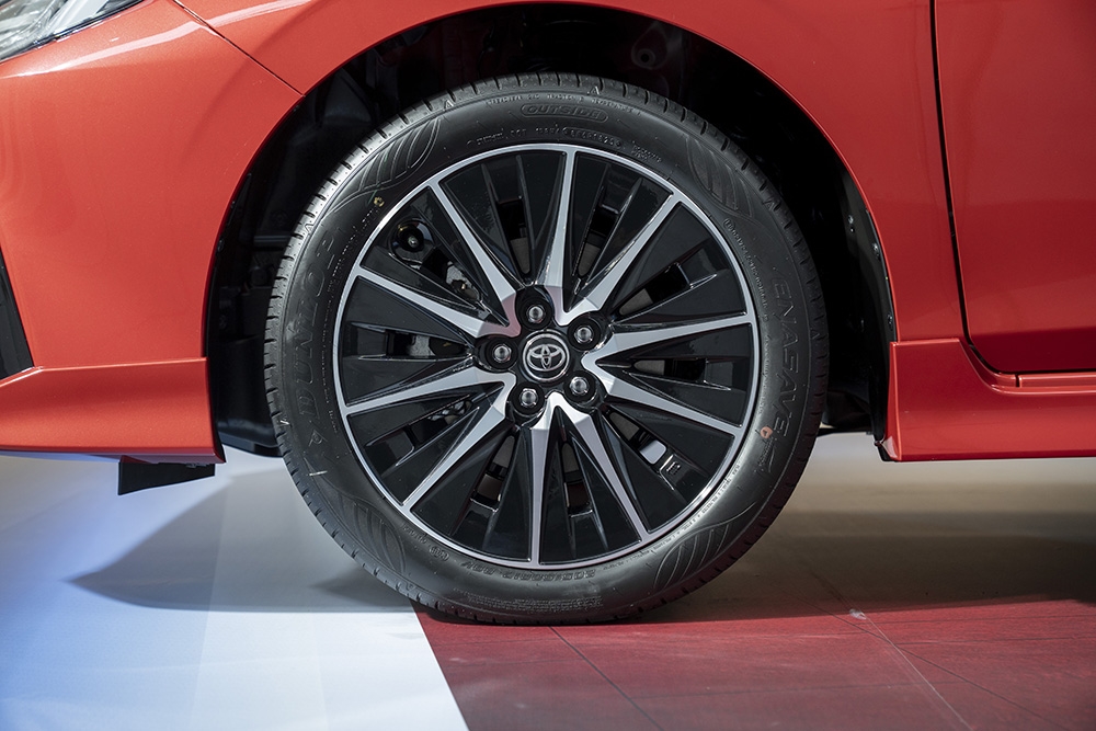 Trên bản HEV Premium, xe sở hữu đèn LED trước/sau, gương chiếu hậu chỉnh/gập điện tự động, mâm hợp kim 16 inch kiểu mới. Với bản HEV GR Sport, xe được trang bị gói phụ kiện GR gồm các chi tiết thể thao hơn như: cản trước/sau, ốp sườn, mâm hợp kim 17 inch và logo “GR” xuất hiện tại nhiều vị trí. Trong khi đó, ở Việt Nam xe vẫn sử dụng mâm 15 inch.