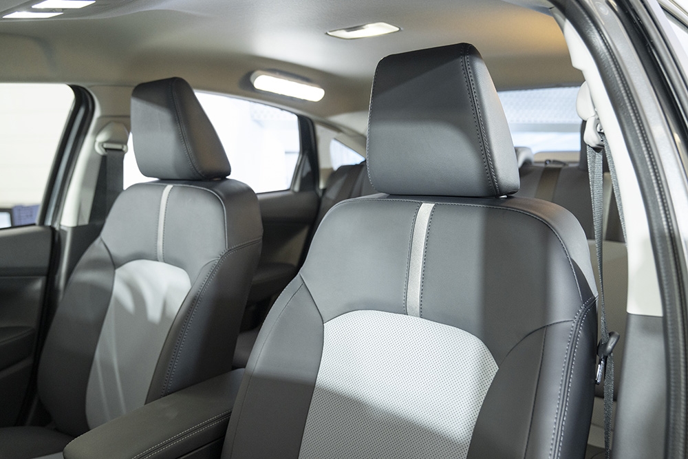 Nội thất Toyota Vios Hybrid không có nhiều khác biệt so với bản thuần xăng. Các trang bị tiện nghi trong cabin bao gồm màn hình thông tin giải trí cảm ứng 10,1 inch mới hỗ trợ Apple CarPlay và Android Auto không dây, hệ thống âm thanh 6 loa, bộ sạc thiết bị không dây, phanh đỗ điện tử có Auto Hold, điều hòa tự động với cửa gió hàng ghế sau, bộ lọc bụi mịn PM2.5 và hệ thống đèn viền 64 màu. Ghế ngồi đều là loại bọc da tổng hợp, song ghế trên bản HEV Premium có hai tông màu đen-xám trong khi bản GR Sport sử dụng thuần màu đen với logo “GR” trên tựa đầu.