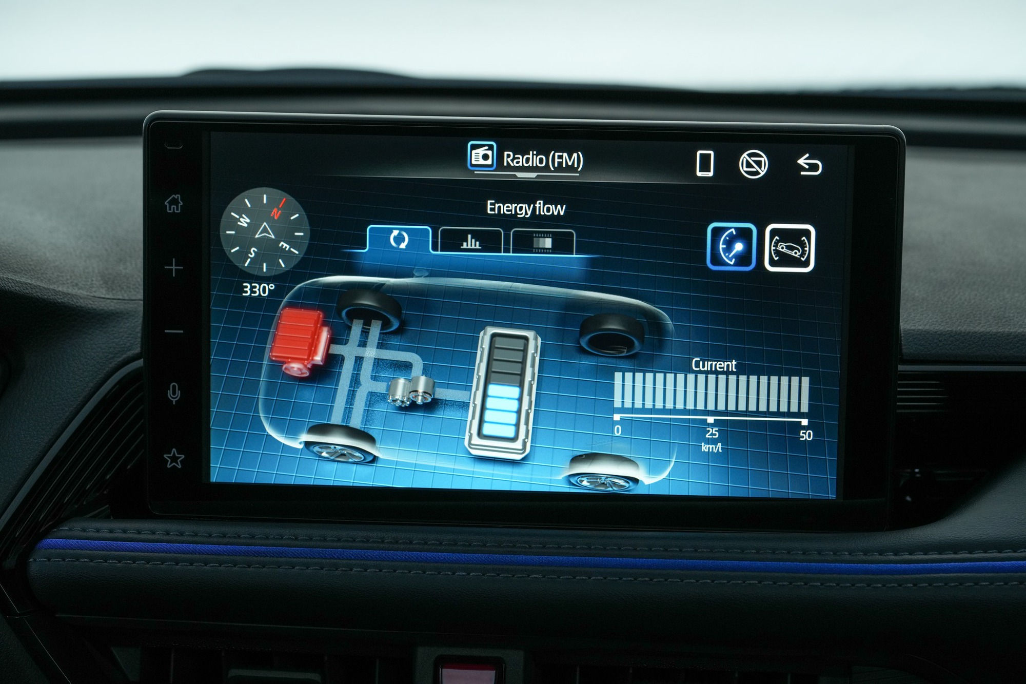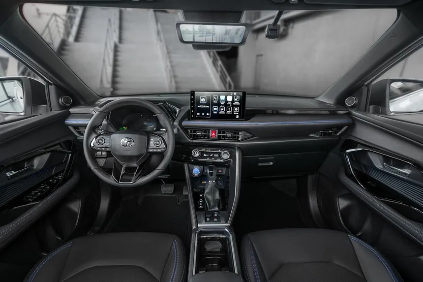 Bên trong cabin, Toyota trang bị cho SE HEV một số tiện nghi mới so với bản hybrid tiêu chuẩn. Xe sở hữu gương chiếu hậu kỹ thuật số tích hợp camera hành trình trước và sau, giúp người lái an tâm hơn trong quá trình di chuyển. Chi tiết gương xe dạng màn hình thế này thường bắt gặp trên các xe sang, ví dụ như Range Rover. Nội thất còn được bổ sung hệ thống đèn viền LED, bộ xử lý tín hiệu số (DSP) nâng cao chất lượng âm thanh.