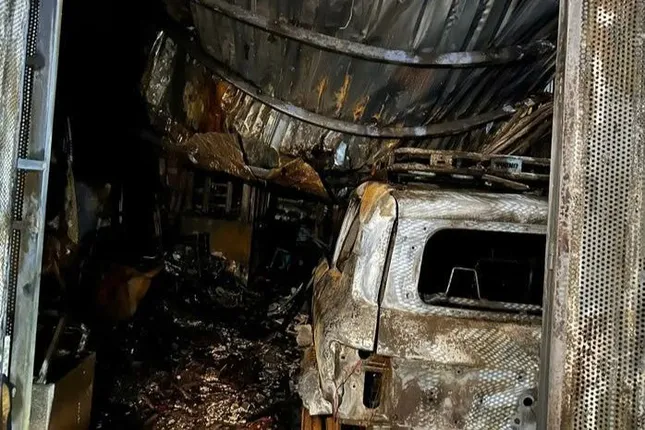 Một ô tô bị cháy trơ khung. Ảnh: C.A.