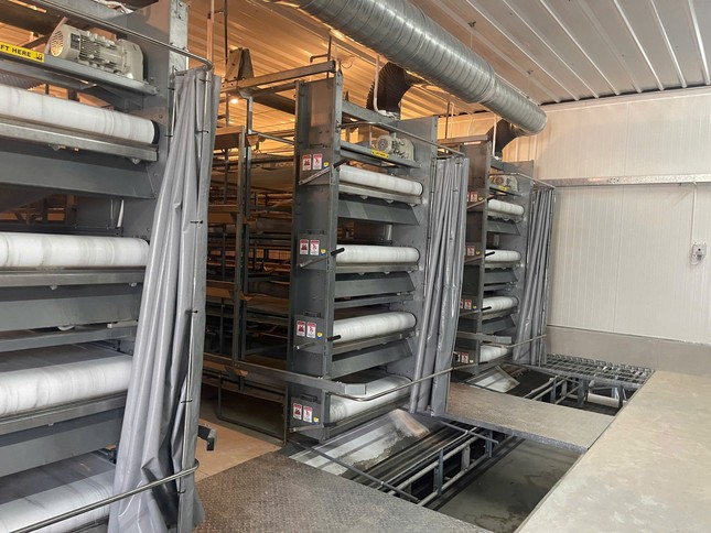 Hệ thống thu gom trứng sẽ được dây chuyền tự động đưa về trung tâm xử lý và đóng gói. Quản lý những nhà gà đẻ này là các kỹ sư công nghệ tự động. Từ khi quả trứng được đẻ ra đến khi ra đến siêu thị mua bán mới có… bàn tay con người chạm vào.