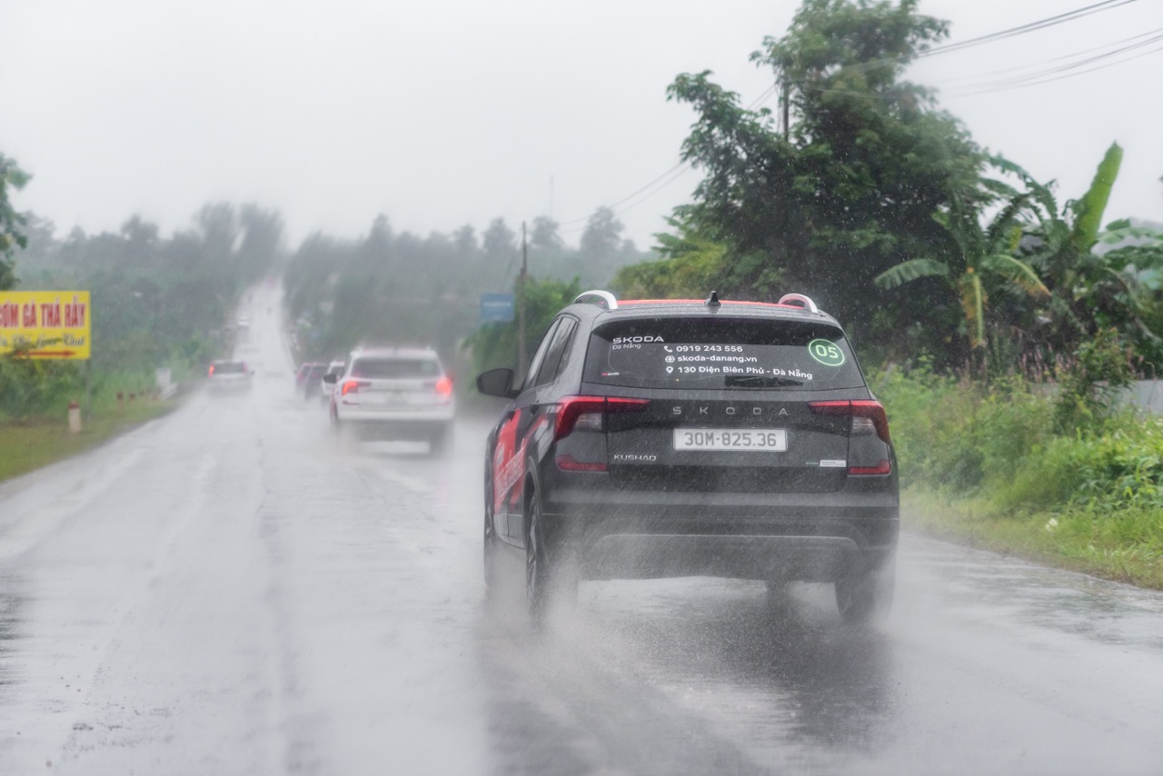 Theo anh Giáp, điểm nổi bật nhất trên Kushaq nằm ở khung gầm và hệ thống treo. Trong điều kiện đường trơn trượt hay khi vào cua gắt tại đèo Hải Vân, xe vẫn giữ được sự ổn định, không bồng bềnh hay lỏng lẻo. Khung gầm và hệ thống treo phối hợp thành một khối thống nhất, giúp xe ôm cua chắc chắn ngay cả ở tốc độ cao.
