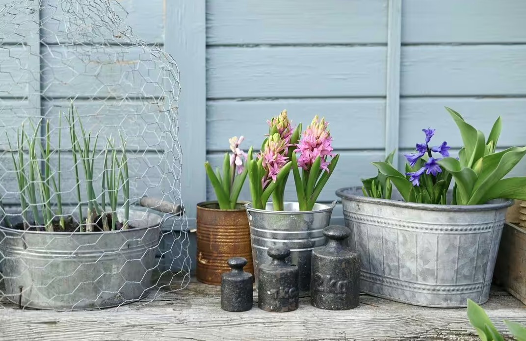 Chậu kim loại có thể là lựa chọn đẹp mắt nhưng chúng cũng nóng lên rất nhanh dưới ánh nắng trực tiếp, có thể làm hỏng rễ và khiến đất khô nhanh hơn dự kiến. Nếu bạn sử dụng chậu kim loại, hãy đặt chúng ở nơi có bóng râm một phần vào thời điểm nóng nhất trong ngày hoặc lót bên trong để giúp cách nhiệt cho rễ.