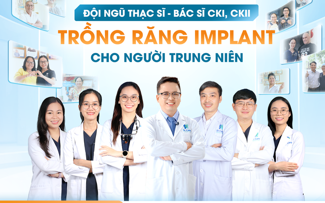Đội ngũ bác sĩ Dr. Care với kinh nghiệm ít nhất 7 năm chuyên sâu trồng răng Implant đã thực hiện hơn 3.500 lần phẫu thuật, bao gồm nhiều trường hợp mắc bệnh lý nền phức tạp, rất thấu hiểu sức khỏe, tâm lý người trung niên.