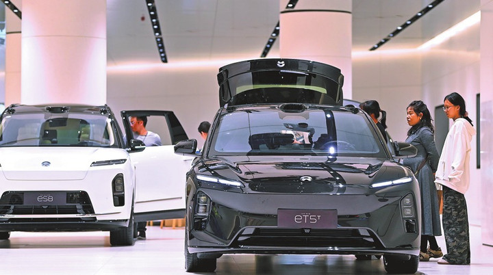 Khách hàng xem chiếc xe điện được hưởng trợ giá theo chương trình thu cũ đổi mới ở thành phố Nam Xương, tỉnh Giang Tây, Trung Quốc. (Ảnh: China Daily)