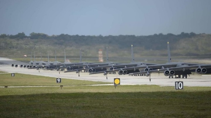 Máy bay ném bom chiến lược B-52H của Mỹ trên đảo Guam. Ảnh Military Watch