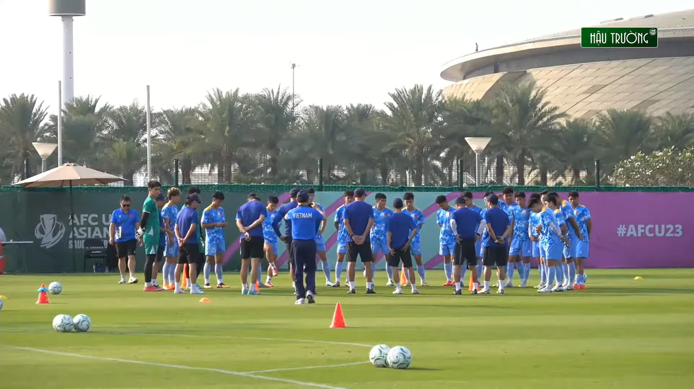 Các cầu thủ U23 Việt Nam trong buổi tập thứ hai tại Saudi Arabia. (Ảnh: Tedtran TV)