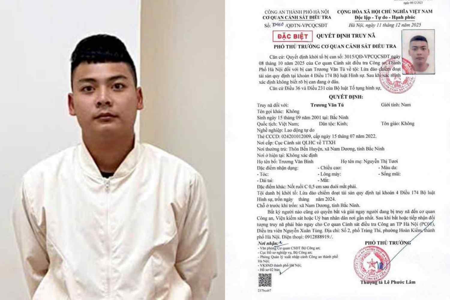 Quyết định truy nã Trương Văn Tú - Ảnh: CA Hà Nội