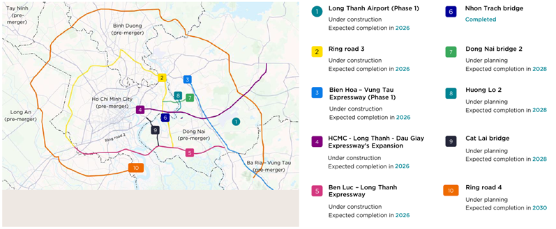 Trong giai đoạn trước, phát triển hạ tầng tại khu vực phía Nam được định hướng theo quy hoạch tổng thể và lộ trình dài hạn. Theo Savills, giai đoạn 2025-2026 đánh dấu bước tiến quan trọng khi nhiều dự án hạ tầng trọng điểm đồng loạt được triển khai, tạo nền tảng cho các giai đoạn phát triển tiếp theo.