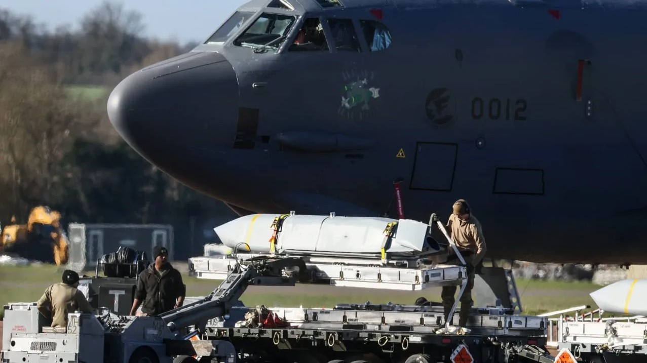 Tên lửa hành trình JASSM-ER được vận chuyển lên máy bay Boeing B-52 Stratofortress của Không quân Mỹ tại căn cứ không quân RAF Fairford, ở Gloucestershire, Anh, vào ngày 14/3/2026, trong bối cảnh xung đột Mỹ - Israel với Iran. Ảnh: Reuters