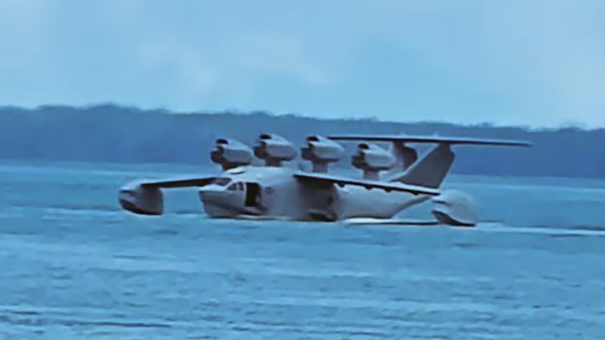 Hình ảnh về “Quái vật biển Bột Hải” - chiếc ekranoplan được cho là chạy bằng động cơ phản lực của Trung Quốc. Ảnh: X