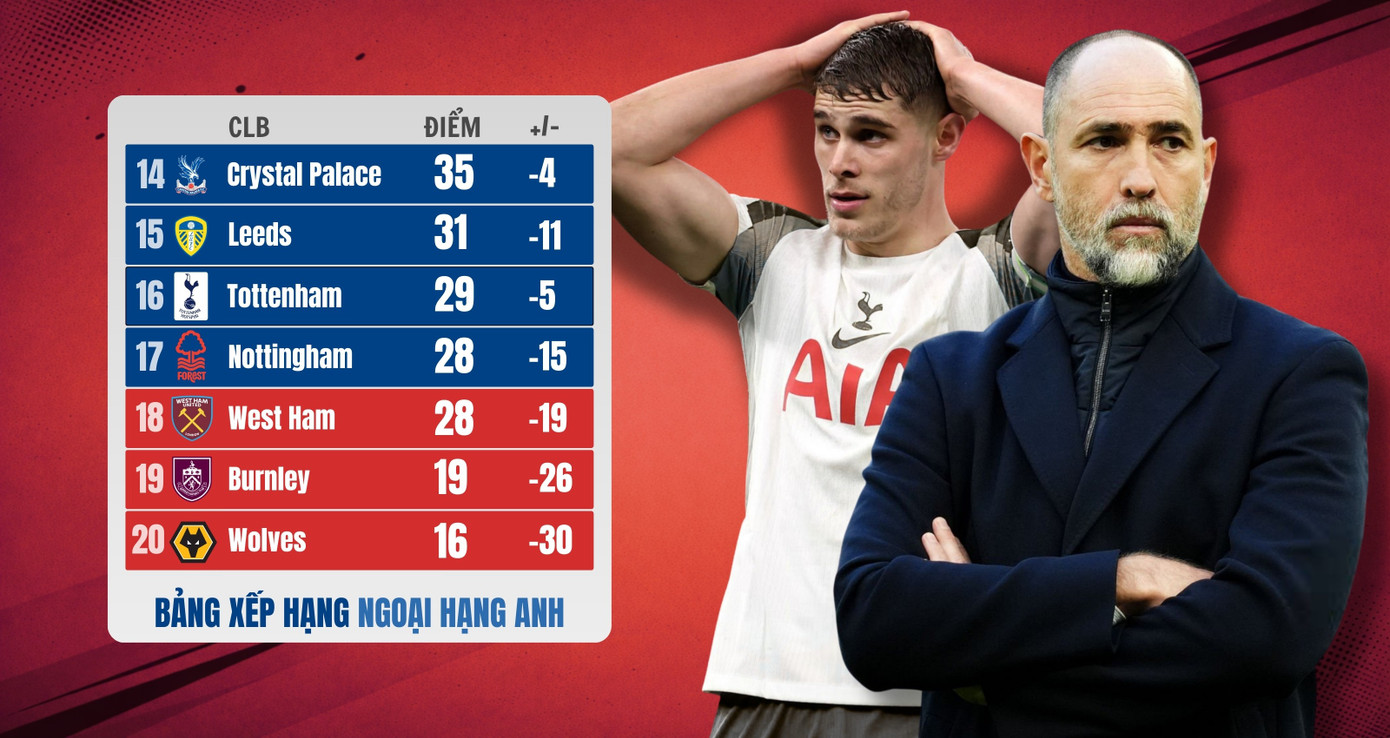 Đêm nay, trên sân nhà Tottenham Hotspur, họ tiếp đón Crystal Palace trong trận đấu mang ý nghĩa sống còn. Một chiến thắng sẽ giúp Spurs vượt Leeds để vươn lên vị trí thứ 15. Nhưng nếu tiếp tục trắng tay, viễn cảnh chính thức rơi vào nhóm “cầm đèn đỏ” sẽ hiện ngay trước mắt Tottenham.