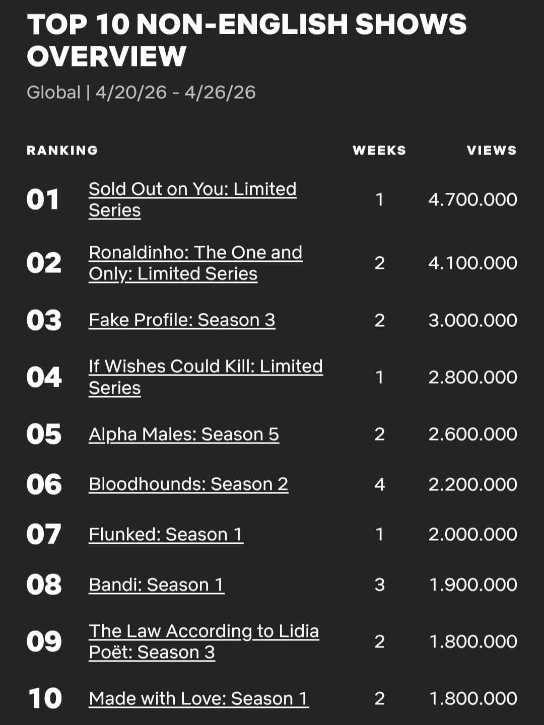Theo thống kê Netflix ngày 29/4, trong tuần từ ngày 20/4 đến ngày 26/4, Sold Out On You ghi nhận 4.7 triệu lượt xem, dẫn đầu tại 8 quốc gia, lọt top 10 tại 43 quốc gia và dẫn đầu bảng xếp hạng những phim không nói tiếng Anh. Tính đến ngày 29/4 theo trang Flix Patrol, Sold Out On Youn xếp thứ 6 trong danh sách 10 TV Shows được xem nhiều nhất Netflix toàn cầu.
