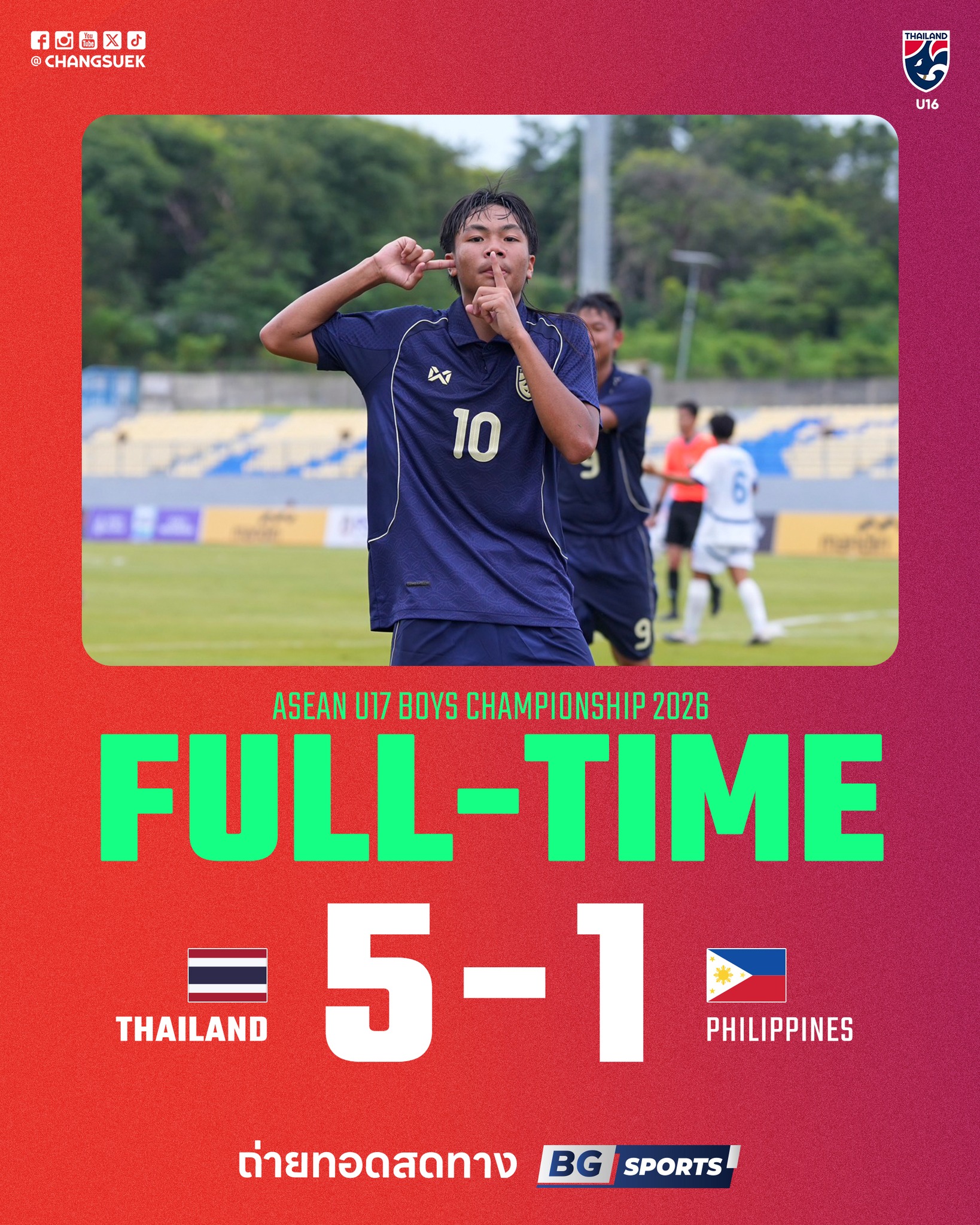 Ở lượt trận mở màn tại bảng B giải U17 Đông Nam Á 2026, U17 Thái Lan gặp đối “cửa dưới” là Philippines. Đúng như dự đoán, đội bóng xứ Chùa Vàng đã chơi hoàn toàn áp đảo và giành chiến thắng với tỷ số rất đậm.