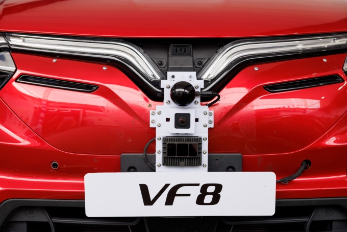 Ông Phạm Hoàng Sơn, người phụ trách dự án này tại Phenikaa-X cho biết, chiếc VF 8 lắp đặt 15 camera quan sát, 12 cảm biến LiDAR và radar. Nhờ đó, hệ thống điện tử có thể nhận diện toàn bộ hình ảnh, vật cản 360 độ trong bán kính 250 m, độ chính xác tính bằng cm.